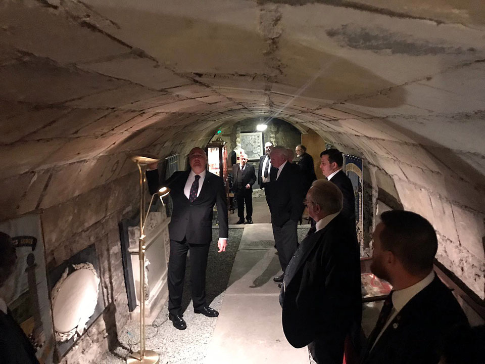 After our meeting, a presentation and tour was given by W Bro Trevor Quartermaine, the WM of the Cumberland Lodge and Bro Emir respectively. The title of the presentation was “Bath, the first Provincial Lodge in England, and its successors” and was given by W Bro Trevor. This was then followed by a tour of the Bath Masonic Hall by Bro Emir.